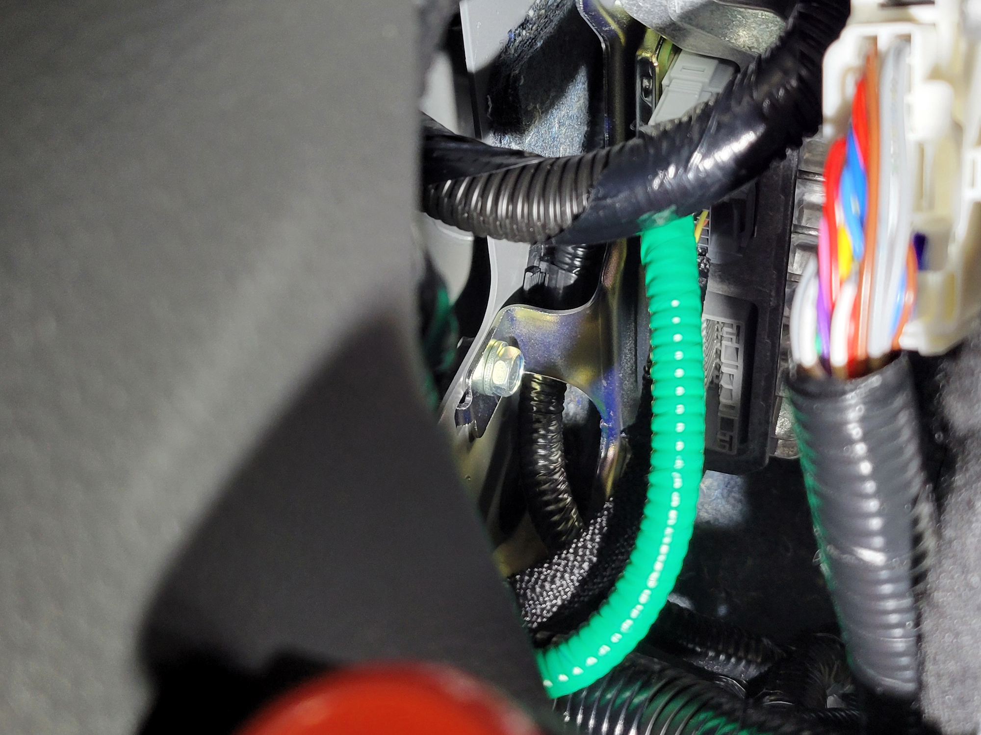 アース線はボンネットの開閉スイッチのマウントに繋いだ。