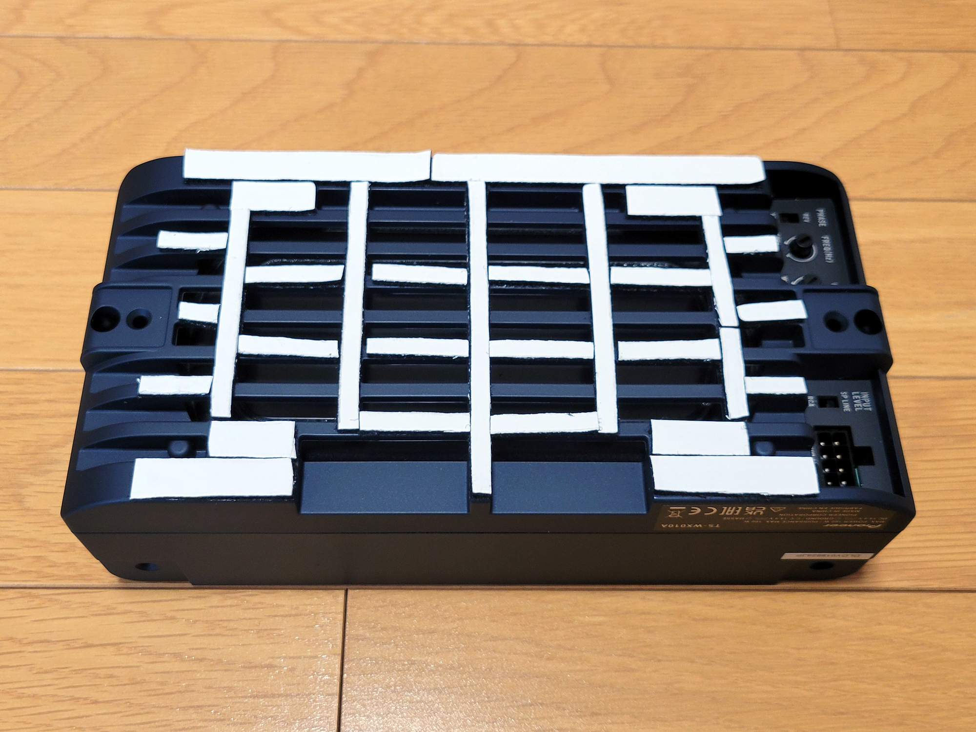 サブウーファーの固定には付属のマウントではなく、マジックテープ貼る